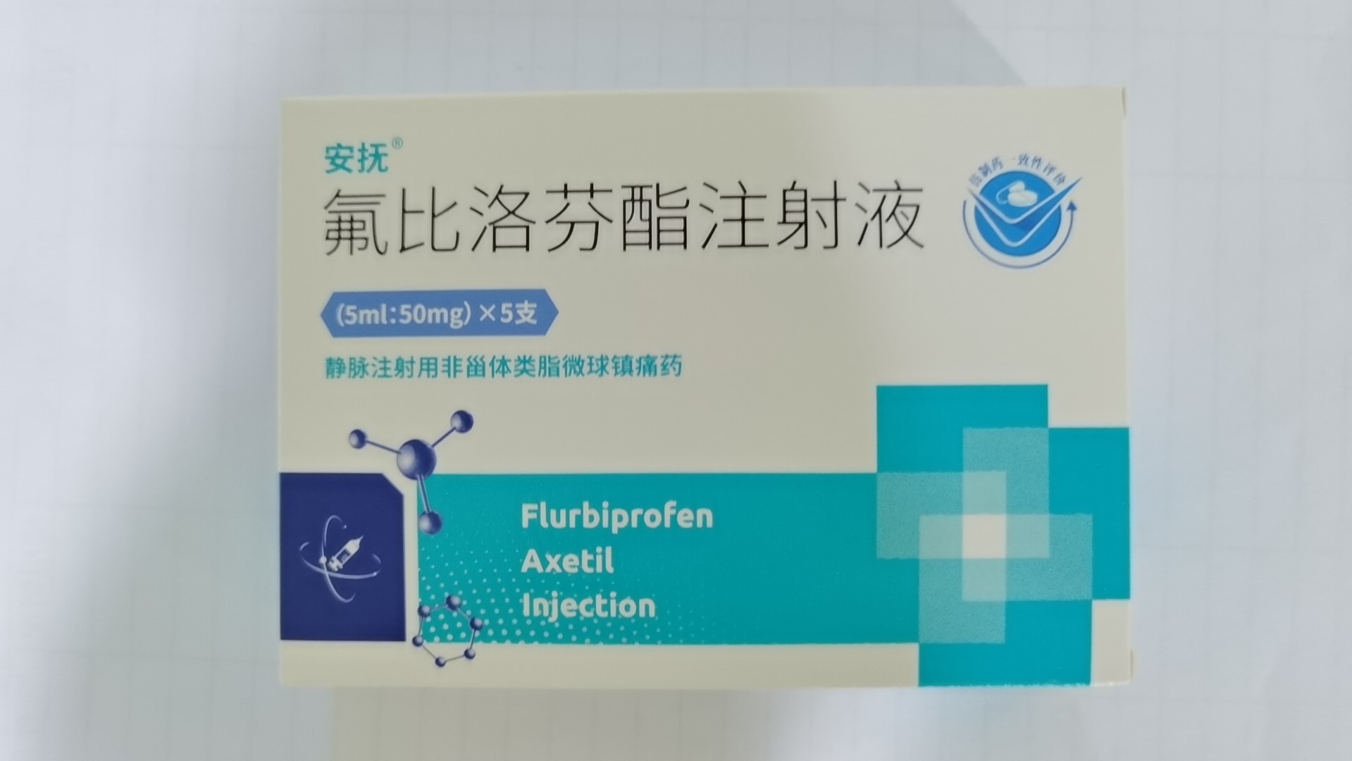 药品名称 氟比洛芬酯注射液 英文名称 Flurbiprofen Axetil Injection 批准文号 国药准字H20183054 药品本位码 86901930000330 生产单位 远大生命科学(武汉)有限公司 上市许可持有人 武汉大安制药有限公司 生产地址 湖北省武汉市东西湖区金银湖生态园区 规格 5ml:50mg 剂型 注射剂 产品类别 化学药品 批准日期 2018-03-12 医保类别 乙 适应症 术后及癌症的镇痛。
