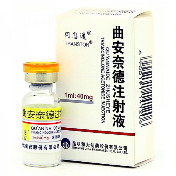 药品名称 曲安奈德注射液 英文名称 Triamcinolone Acetonide Injection 批准文号 国药准字H53021604 原批准文号 国药准字H53021604 药品本位码 86905589000222 生产单位 昆明积大制药股份有限公司 上市许可持有人 昆明积大制药股份有限公司 生产地址 云南省昆明市高新技术开发区科新路389号 规格 1ml:40mg 剂型 注射剂 产品类别 化学药品 批准日期 2020-08-19 医保类别 乙 适应症 曲安奈德(曲安奈德注射液)肌肉注射给药用于皮质类固醇类药物治疗的疾病,例如变态反应性疾病(用于患者处于严重虚弱状态,使用传统药物无效时)、皮肤病、弥漫性风湿性关节炎、其他结缔组织疾病。当口服皮质类固醇药物不可行时,肌肉内注射给药对于以上疾病疗效显著。 曲安奈德可经关节内注射或囊内注射,还可直接进行腱鞘或关节囊给药。这种给药方式能够对疼痛、关节肿胀、僵直(这些症状是创伤、风湿性关节炎、骨关节炎、滑膜炎、粘液囊炎、腱炎的典型症状)给予有效的局部、短期治疗。 在治疗弥漫性关节疾病时,关节内注射曲安奈德辅助传统方法的治疗。另一方面,在关节创伤或粘液囊炎等治疗条件受限制的条件下,关节内注射曲安奈德为治疗疾病提供了一种新的选择。